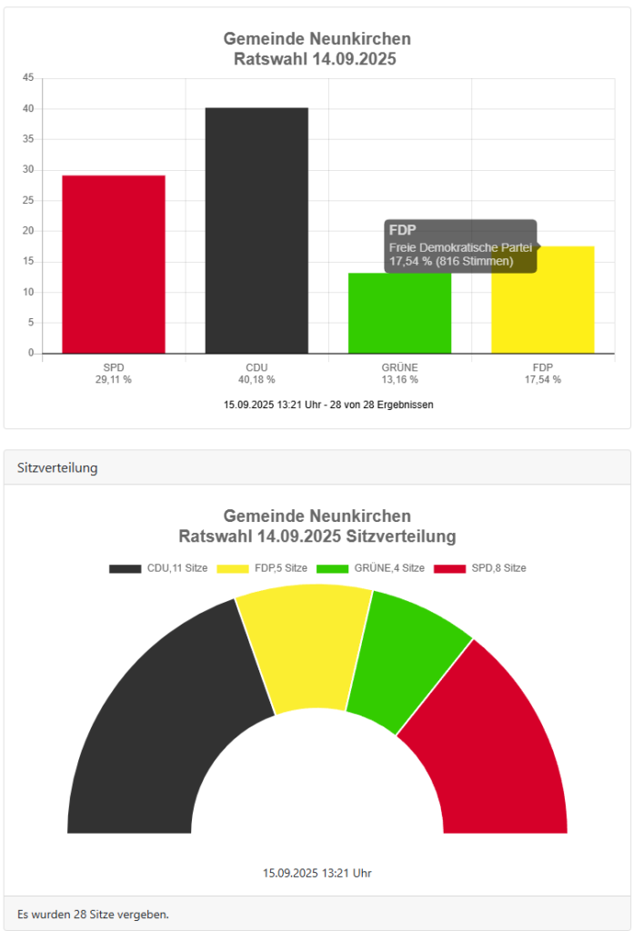 Die Ratswahl am 14.09.2025 ist entschieden – und wir freuen uns sehr über 5 Sitze für die FDP Neunkirchen! 💛🚀